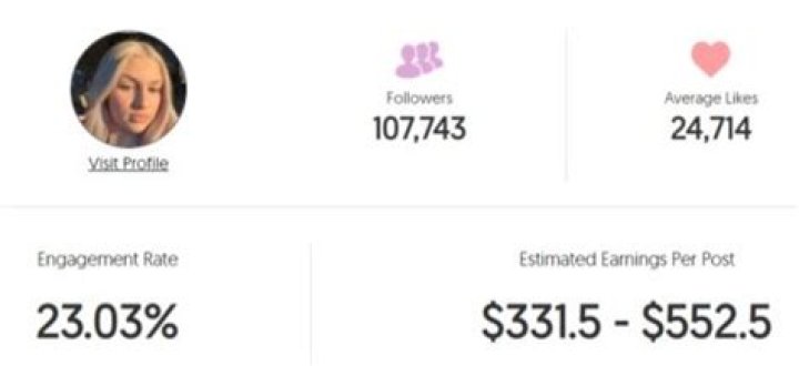 Considering Mara’s latest 15 posts, the average engagement rate of followers on each of her posts is 0.49%. Thus, the average estimate of the amount she earns from sponsorship is between $845.25 – $1,408.75.